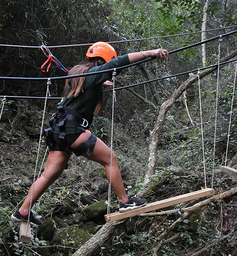 Combina la exploración de entornos naturales con actividades físicas que implican riesgo controlado, desafíos