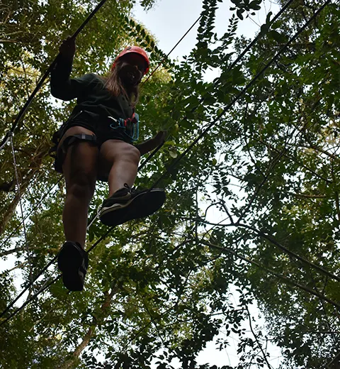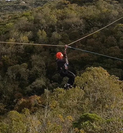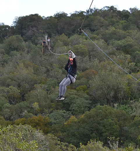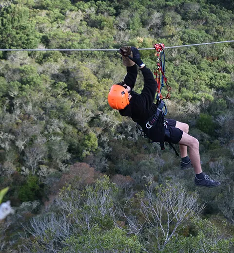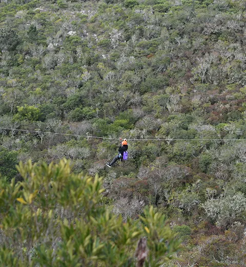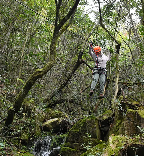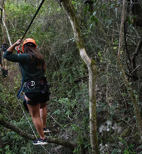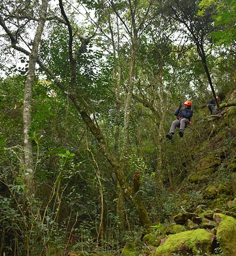tirolesa que atraviesa la quebrada y relaja después de tanta actividad.