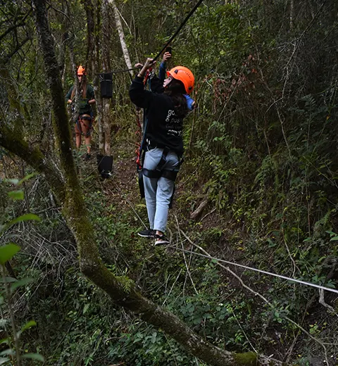 La segunda estación es el aerocarril que los y las sumerge en una de las quebradas que existen